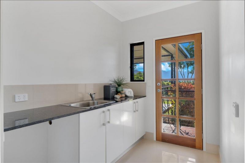 Outside presents heaven on earth ; sit up on your bar stools on the expansive deck and take in the incredible views of the rolling hills and the below grounds. The grounds are breathtaking and feature a variety of trees, native & tropical plants as well as an impressive retaining walls and garden beds.
