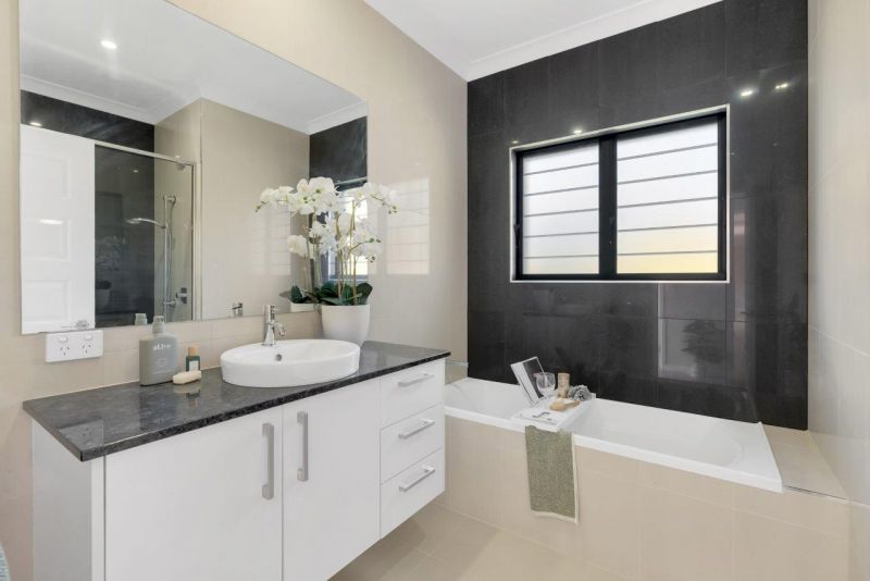 The deluxe kitchen is complemented with an island bench, 900mm appliances and ample storage. Adorned with cool toned walls, neutral window furnishings and tiled floors throughout the home, invites you instantly with its open and light interiors.
