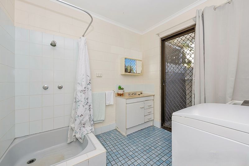 The fully air-conditioned, carpeted living area flows through to a smart galley-style kitchen, while a separate storage cupboard adds everyday practicality. Both bedrooms are well proportioned, and the generous bathroom incorporates the laundry with direct access to the private outdoors.