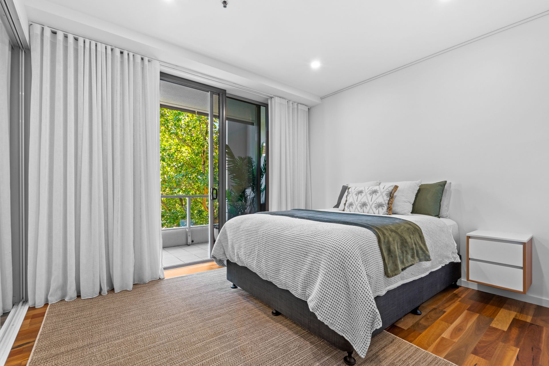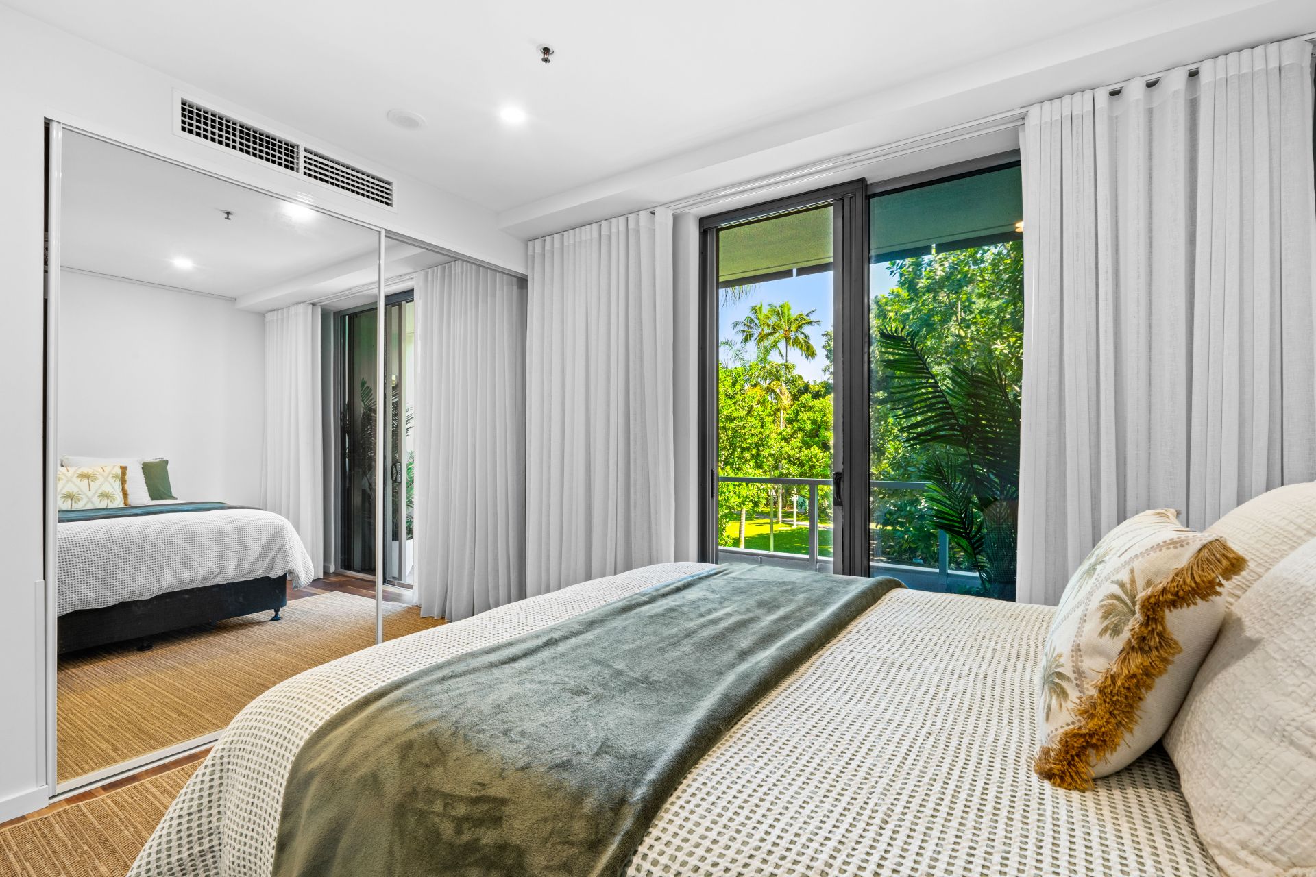Including two generous bedrooms, each with calming parkland aspects. The master suite includes balcony access and a private ensuite, while the second bedroom is serviced by the main bathroom ; ideal for dual-occupancy bookings, couples, or business travellers, maximising booking flexibility and return.